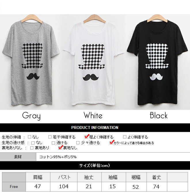 PRODUCT INFORMATION 生地の伸縮 : なし 若干伸縮する 程よく伸縮する よく伸縮する 生地の透け感 : なし 透ける 少々透ける カラーによって透ける場合がある 裏地ありなし : 裏地あり 裏地なし 素材 コットン95%+ポリ5% サイズ(単位:cm) 肩幅 バスト 袖丈 袖幅 裾幅 着丈 Free 47 104 21 15 52 74 モデルサイズ 46kg, 163cm、モデルFreeサイズ着用 スタッフコメント ユニークなフロントのプリントがお洒落な半袖カットソーです。